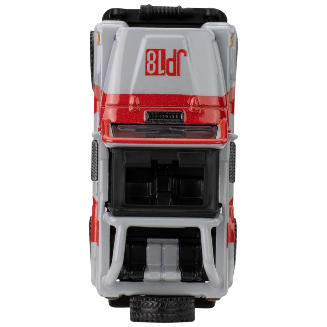 Este icónico vehículo, parte de la línea Hot Wheels Premium Pop Culture, es una réplica a escala 1:64 del famoso Jeep que aparece en la película original. El modelo captura a la perfección todos los detalles del vehículo, desde su distintivo color amarillo y rojo hasta su construcción de metal y llantas de goma Real Riders.
