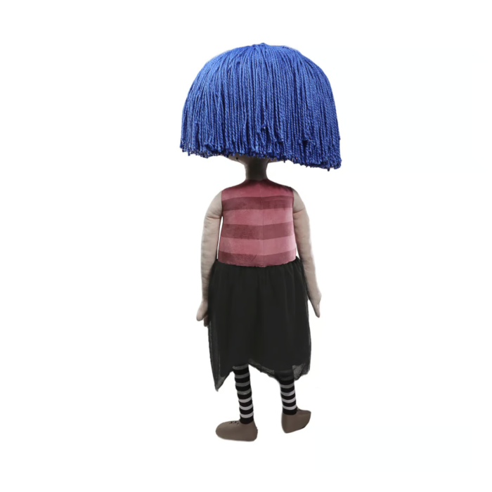 - Con 1,5 metros de altura, el peluche a tamaño real Coraline con ojos de botón de Kidrobot también incluye una base metálica para exhibirlo.