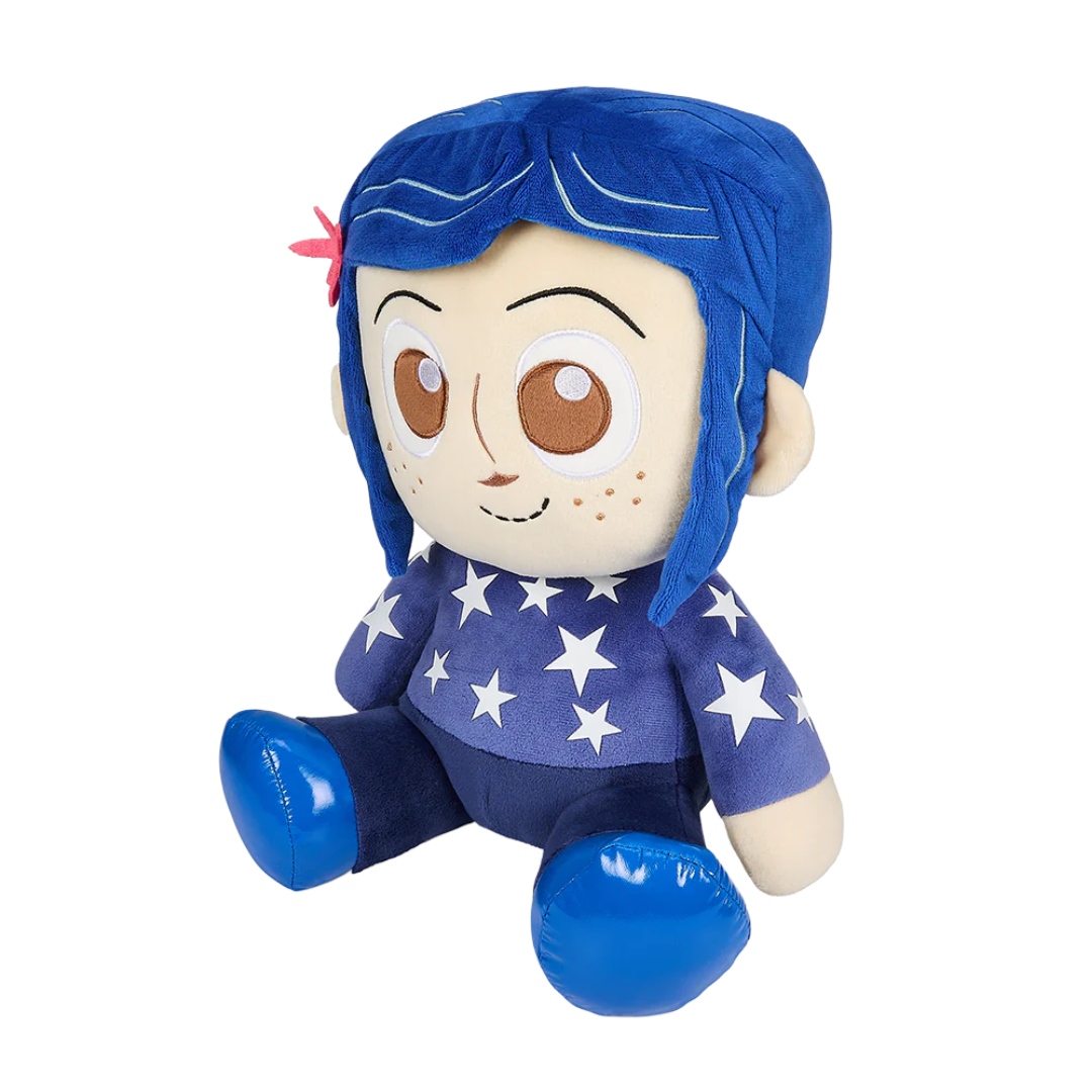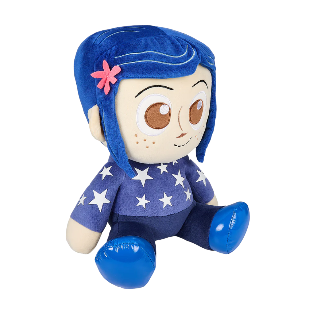 Disfruta de la magia del cine de animación con el peluche Coraline HugMe Shake, basado en la película Coraline y la Puerta Secreta. Esta pieza de Kidrobot presenta a la protagonista con su emblemático suéter azul con estrellas, combinando un diseño detallado con una función interactiva única.