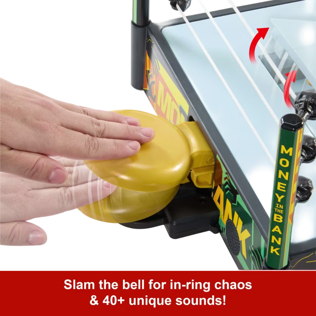 ¡Prepárate para la acción impredecible de la WWE con el Money in The Bank Cash-in Ring Playset de Mattel!